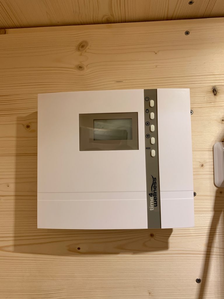 - Die Einstellung der Saunasteuerung, wird gemäß der Einweisung des Vermieters vorgenommen. Die eingestellte Temperatur sollte für alle Teilnehmer gewählt werden.